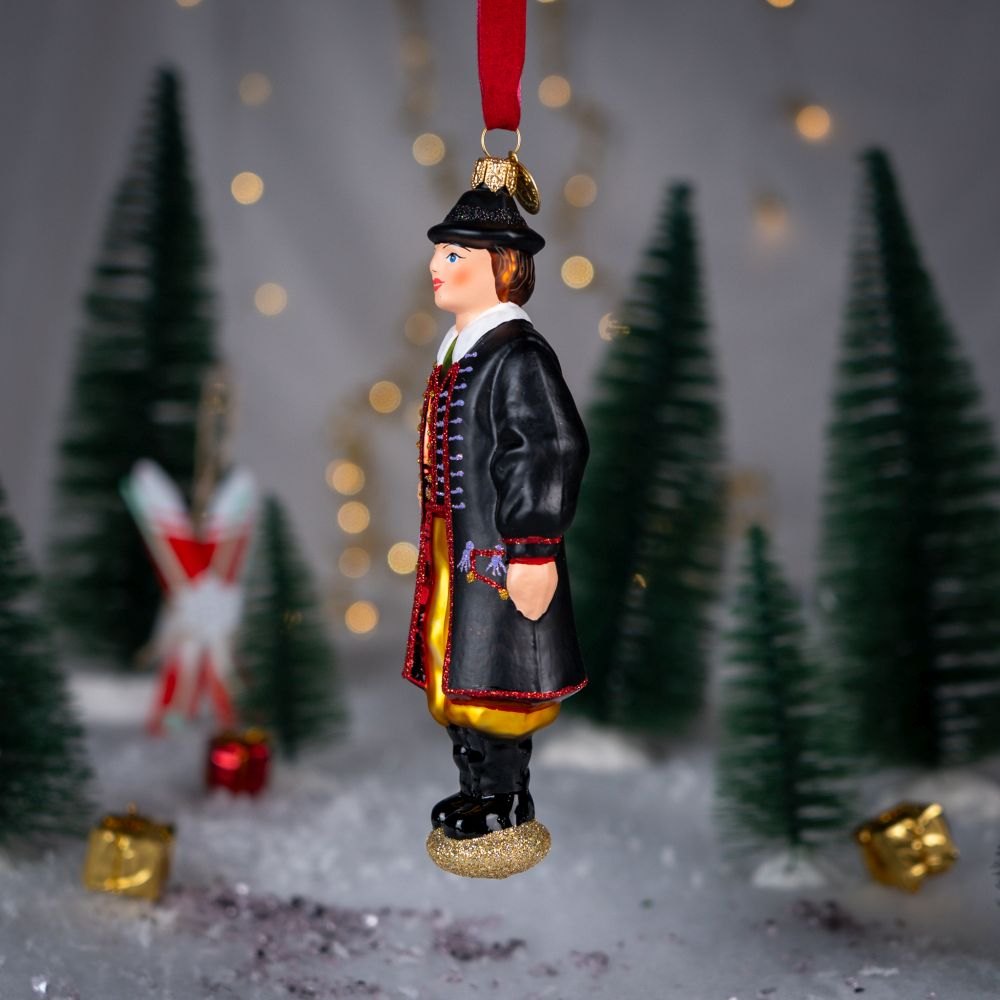 Bytom male folk costume – This handmade glass man brings memories about the traditional costume and the embroidery from Bytom.