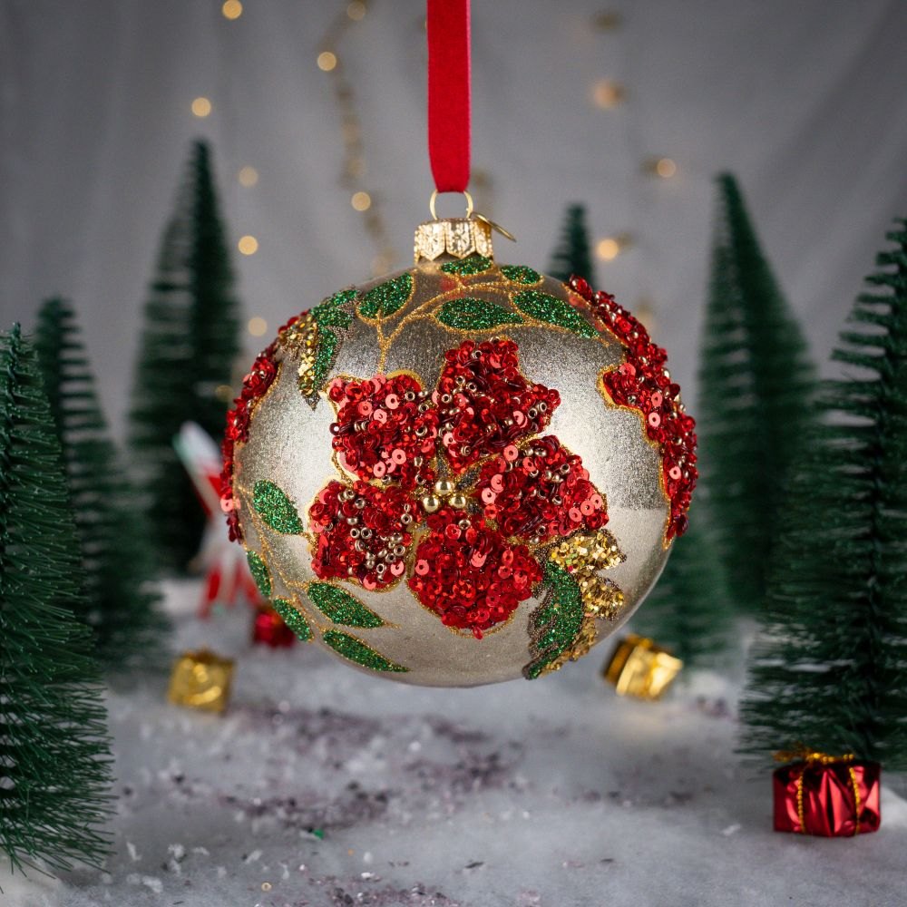 Hand-blown and decorated, they refer to the Polish tradition of creating Christmas tree decorations.
