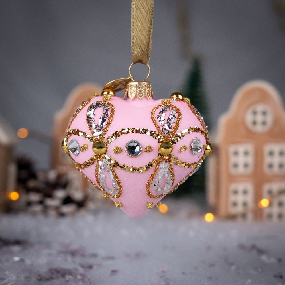 Bring a touch of royal style to your tree! This amethyst heart with golden ornaments and sparkling crystals is a luxurious decoration that will illuminate any festive interior.