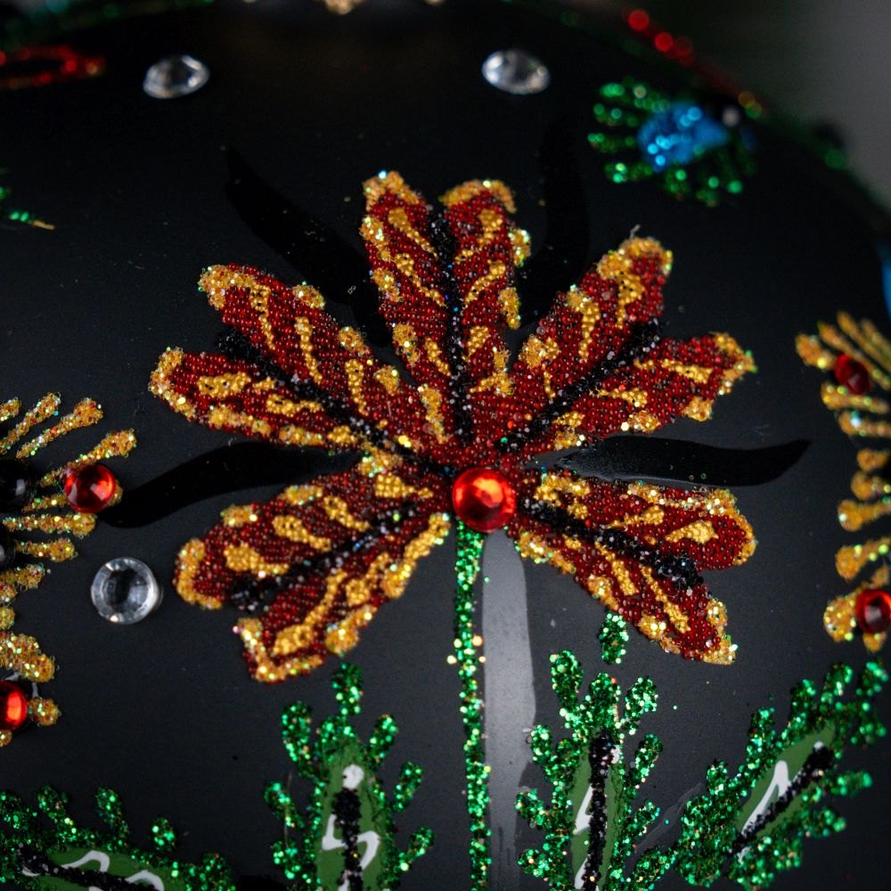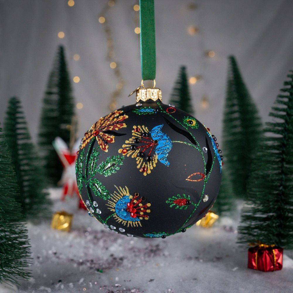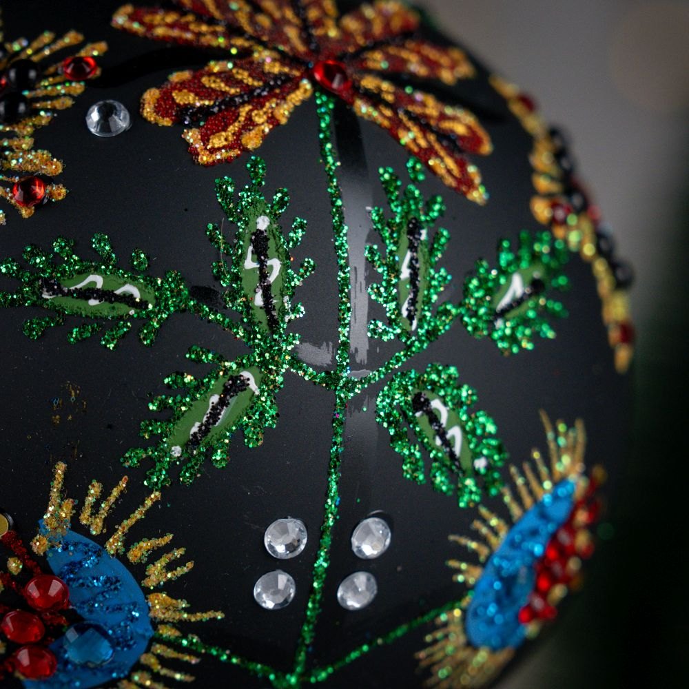 Cracow Flower big – Thanks to the Bombkarnia author’s collection you can admire variety of polish tradition of folk embroidery, on this hand-painted bauble presented by delicate, sparkling with brocade floral design, which features, characteristic for eas