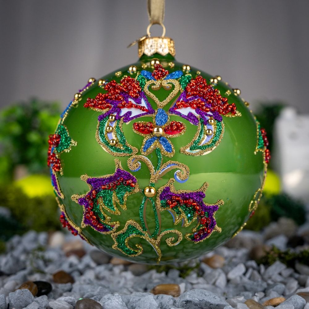 Zestaw dwóch ręcznie malowanych bombek z haftem kontuszowym. Kolekcja szlachecka.