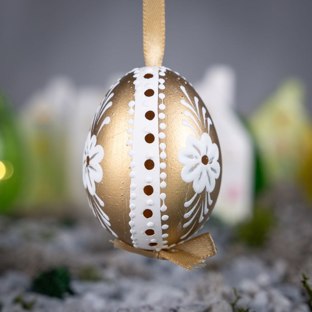 Cena za jedną sztukę. Biała ażurowa pisanka zdobiona subtelnym, ażurowym wzorem. Pisanka nawiązuje swoją symboliką do nadejścia wiosny, sił witalnych oraz nowego życia. Jajko jest rękodziełem, nie ma dwóch takich samych pisanek. Zamawiane przez e-sklep są wybierane losowo, spośród grupy pisanek o podobnym kolorze i motywach zdobień.