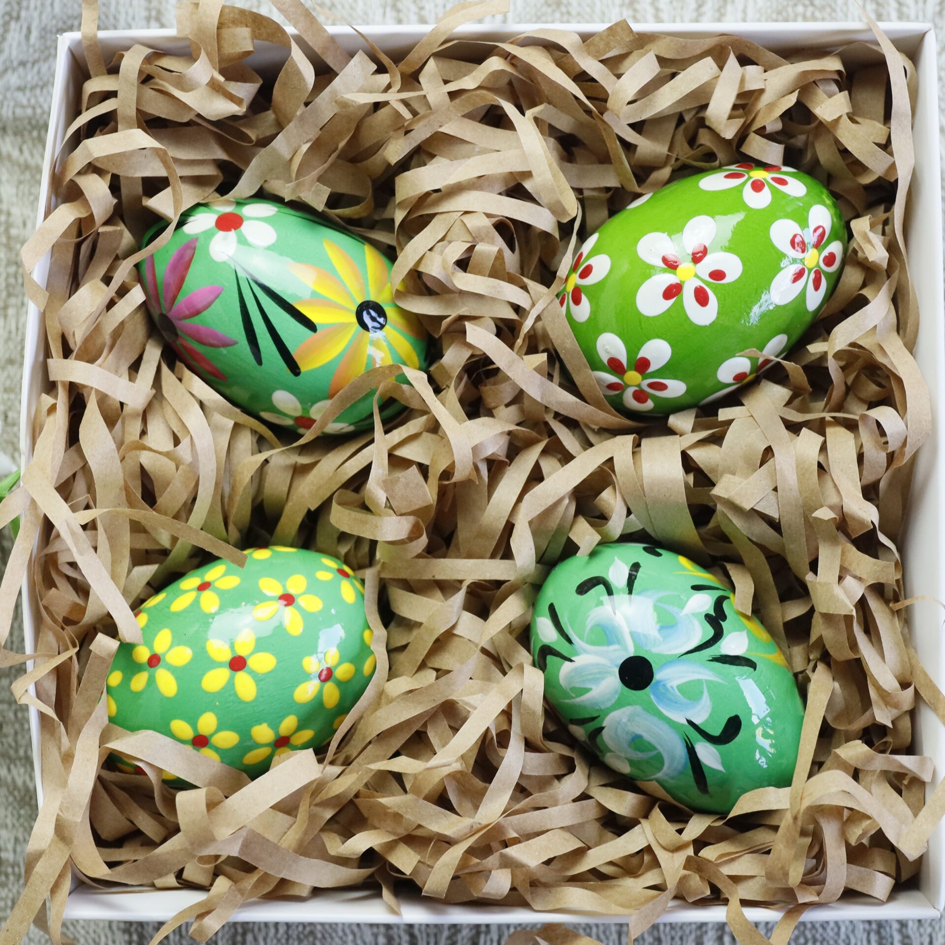 Zestaw pisanek drewnianych – Kwiaty na zielonym tle