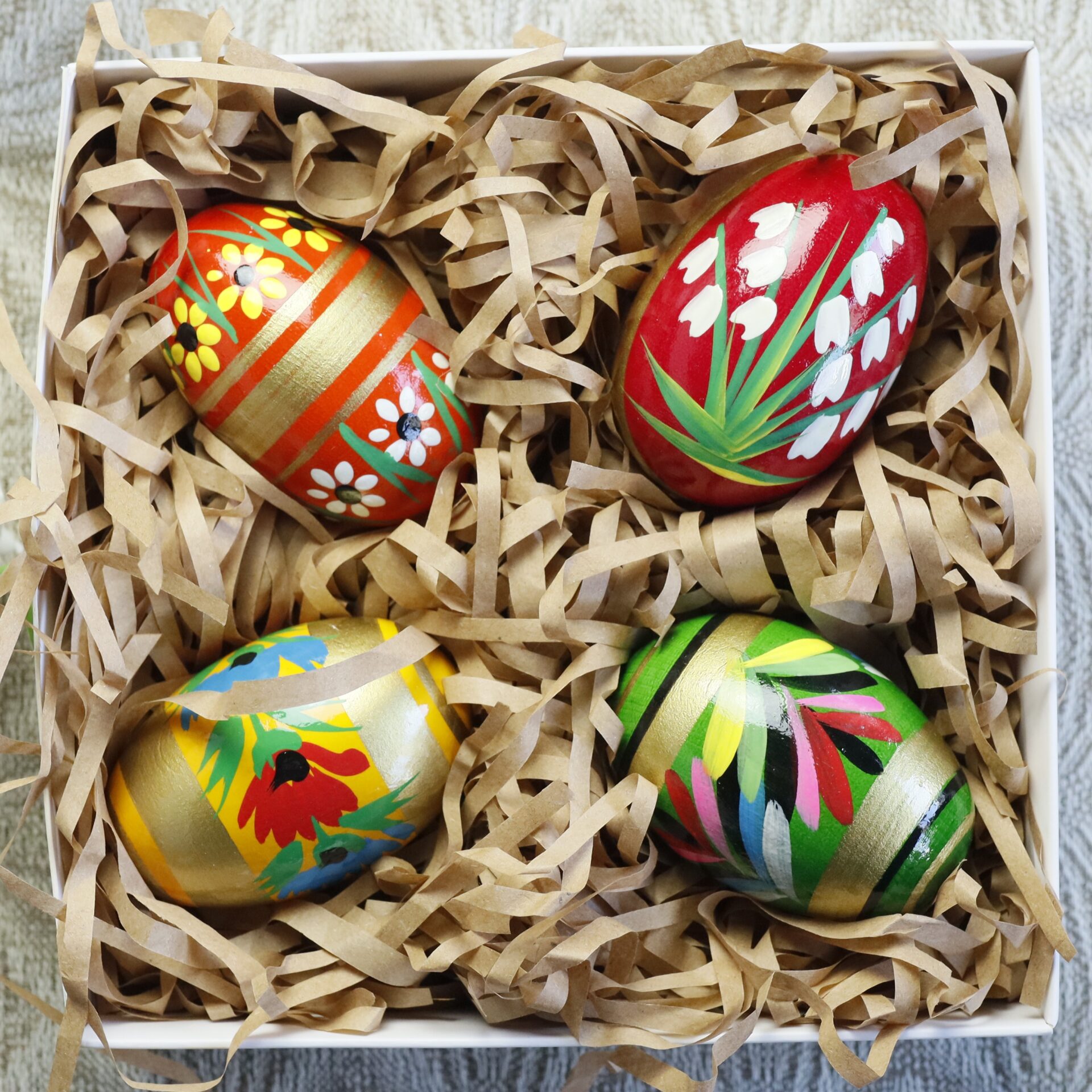 Zestaw pisanek drewnianych – Kwiaty ze złotem