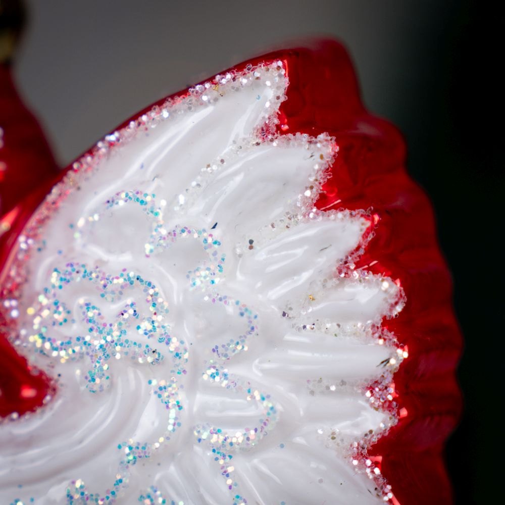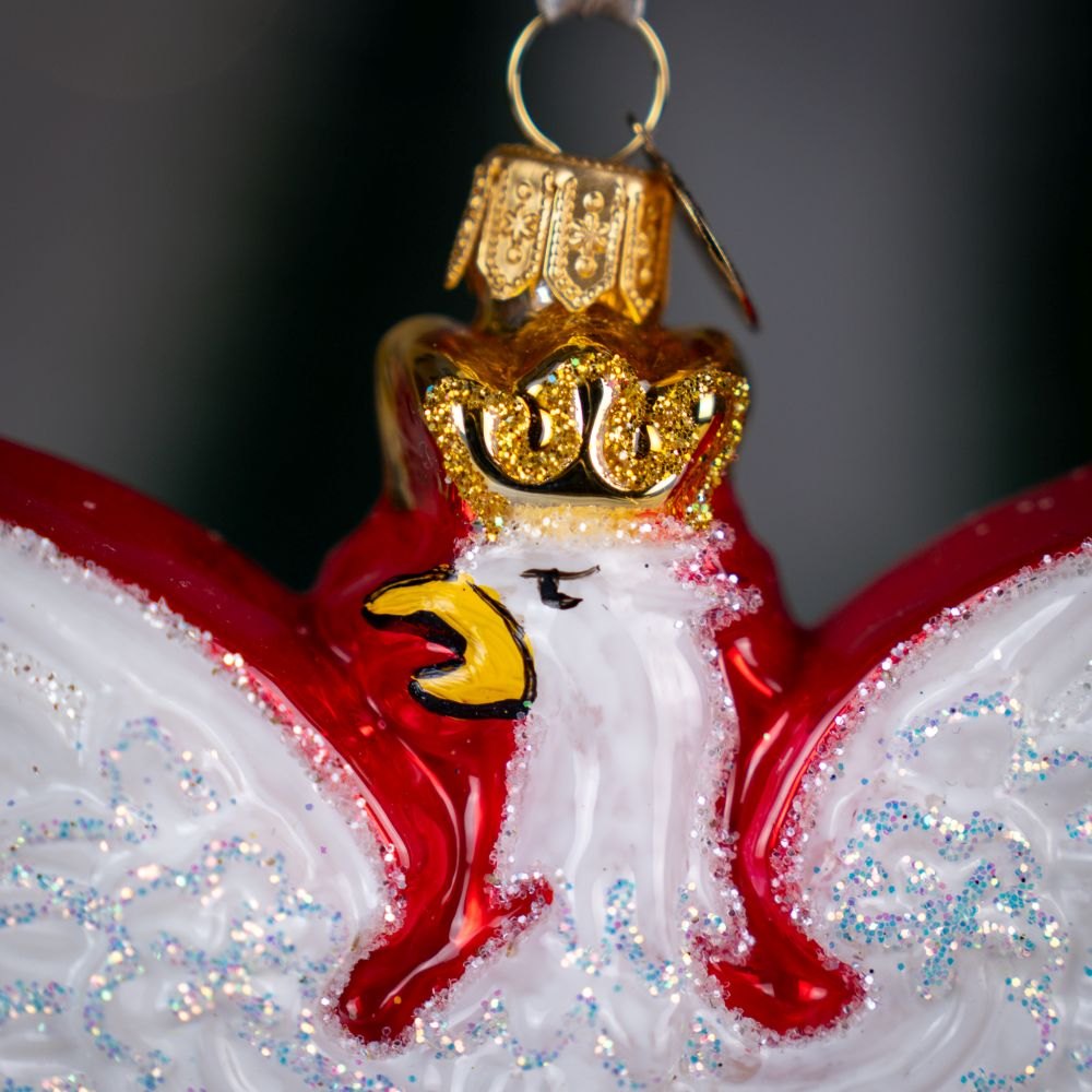 Ta wyjątkowa bombka w kształcie Orła Białego to prawdziwy symbol dumy i tradycji, idealny dla osób, które chcą podkreślić polski charakter świątecznych dekoracji. Ozdoba przedstawia majestatycznego, białego orła z rozpostartymi skrzydłami, otoczonego czerwonym tłem, które pięknie podkreśla jego formę. Całość zwieńcza złota korona, a delikatne, brokatowe akcenty dodają bombce elegancji i subtelnego blasku.