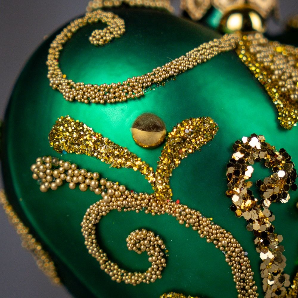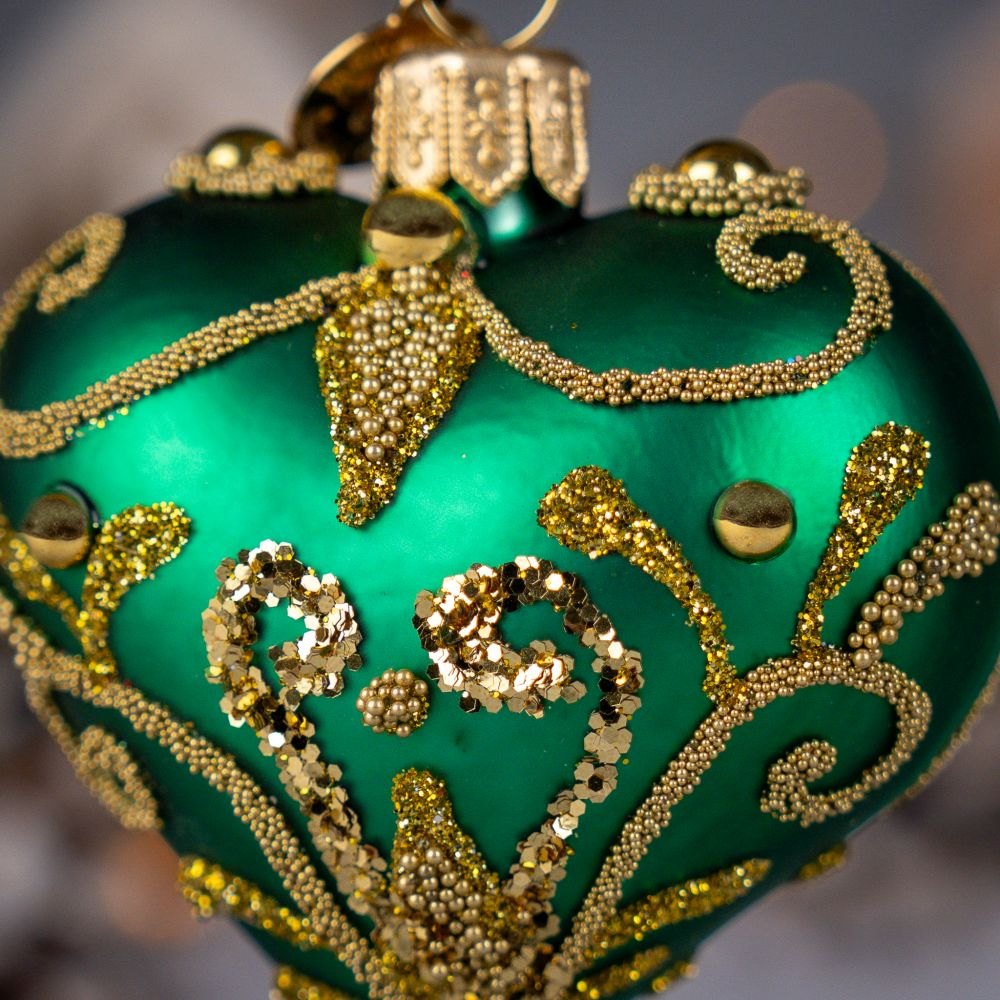Dodaj swojej choince nutę królewskiego blasku! To wyjątkowe serce ze złotymi zdobieniami i połyskującymi detalami stworzy atmosferę elegancji i zachwyci każdego miłośnika wyjątkowych, świątecznych ozdób.