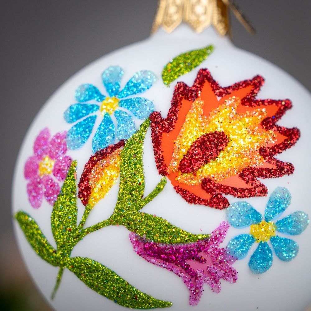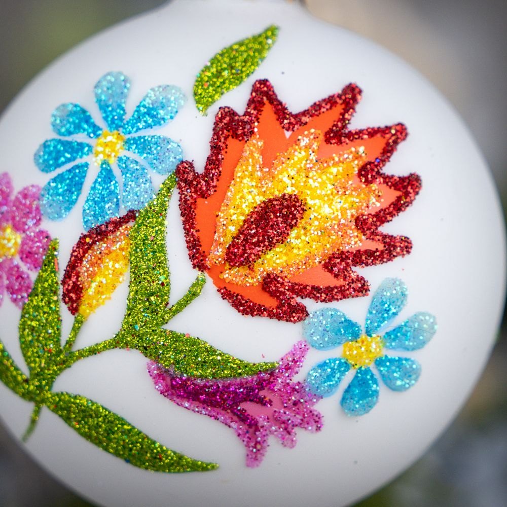 Jedną z najbardziej znanych kolekcji Bombkarni, jest ta nawiązująca do haftów regionalnych. Chcemy ukazywać dziedzictwo polskiej sztuki ludowej w nowy sposób, czyli na szklanych bombkach.