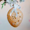 A glass, hand-decorated egg with a delicate lace motif. A decorative egg that you can display all year round: in spring, hung on a pastel ribbon in the window or under lamps, during Easter breakfast among flowers on a decorative plate, and in winter on a choice. Each bauble is made and decorated by hand, so no two are alike.