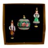 Cracow Set – The set of two, mouth-blown and hand-decorated, glass figurines in Cracow folk costumes and a bauble covered with Cracow embroidery.
