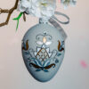 The egg is inspired by the Kashubian pattern. Kashubian embroidery was created in the nineteenth and twentieth centuries. The most common palmette motifs, fruit, pomegranate flowers, tulips, daisies, or small elements: bees, clovers, small flowers. The colors were modeled on the traditional Kashubian furniture. They were mostly blue, green, and small red, yellow and black accents. Over time, several Kashubian embroidery schools emerged, the most popular of which are Wdzydze, Żukowska, Pucka, Wejherowska, and Tuchola.