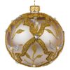 Glass, mouth blown and hand-decorated, red bauble with a splendid ornamental composition. The whole composition brings to mind an old baroque tapestry.