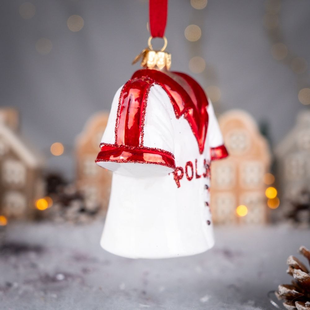 Bring a Polish touch to your Christmas! The polish t-shirt ornament is an elegant and symbolic decoration that adds a unique patriotic accent to your tree.