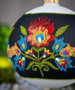 Polish folk tradition hides a wealth of patterns that delight with their precision and depth of message. Glass Christmas tree ornaments drawing from paper cut-out motifs are a unique decorative element for any interior. Baubles with a black cut-out pattern are eye-catching due to their contrast and elegance, fitting both modern and classic arrangements. Every detail applied to the glass surface reflects the craftsmanship and patience of the artisans involved in this craft.